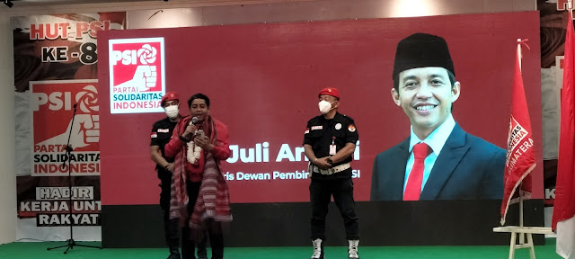 “Seperti tagline PSI, seluruh kader dan calon PSI harus hadir dan kerja untuk rakyat, yakni merespon menyapa rakyat, hadir untuk rakyat, menyejahterakan serta peduli pada rakyat. Dengan begitu saya yakin PSI pasti mampu menang pada Pemilihan Umum (Pemilu) 2024 mendatang,” ujarnya.